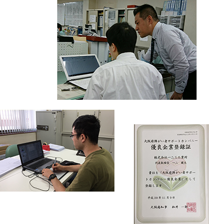 一二三工業所は2017年夏に初めて、発達障がいをもつ男子一人の職業体験を5日間受け入れました。そこで、普段私たちが業務に追われて手の届かない仕事をしていただき、非常に助かりました。そして何より、障がい者という、私たちが耳を傾けなければならない人が社内に存在することで、社員たちの思いやりを刺激し、社内の雰囲気がやさしくなりました。